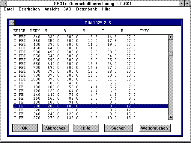 Version mit Datenbank für T-Träger nach DIN 1024, Doppel-T nach DIN 1025,