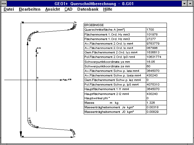 Von der GEO1-Software zur Querschnittberechnung gibt es eine erweiterte