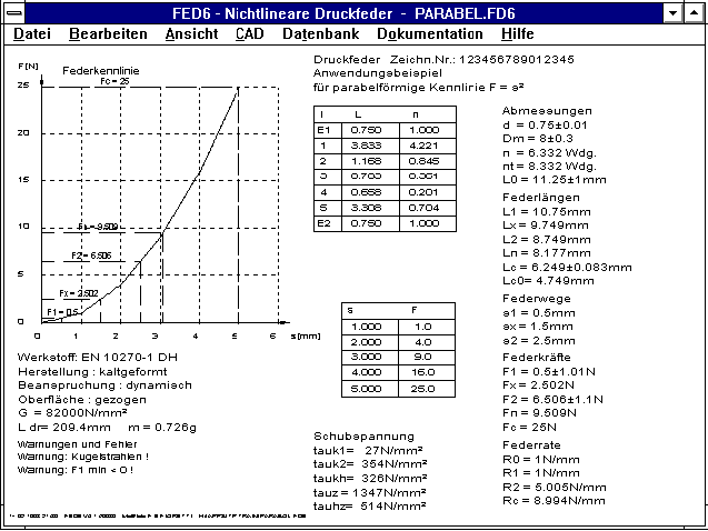 Federkräfte eingeben, FED6 berechnet dann die zugehörige