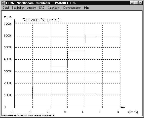 in einem Diagramm die Eigenfrequenz in Abhängigkeit vom Federweg