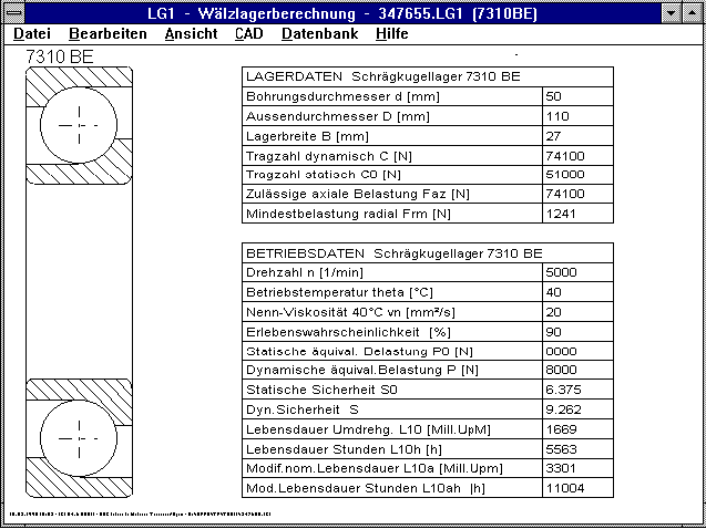 wir die Berechnung der Lagersteifigkeit der gewählten Wälzlager