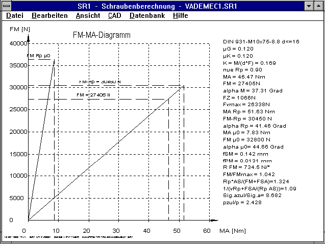 Neu im Schraubenprogramm SR1 ist ein Diagramm der Klemmkraft in