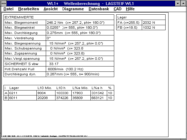 biegekritischen Drehzahl rechnet das Programm mit Punktmassen,