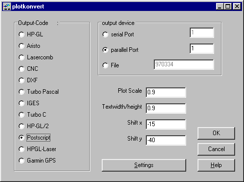 Manager, and the pen numbers for the HPGL Manager. When outputting as