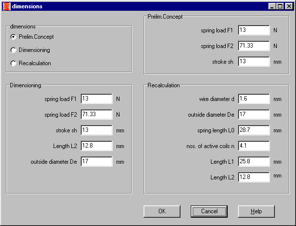 options for pre-dimensioning, dimensioning and recalculation. You can