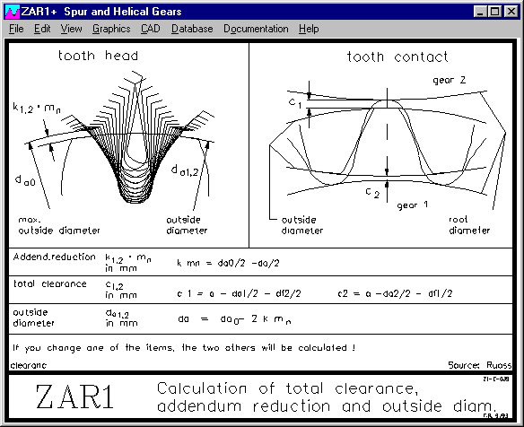 pitch) and Ftw (operating pitch) are printed out, normal and radial