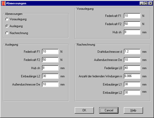 FED1+ unter "Datei-Neu" eine neue Feder berechnen will,