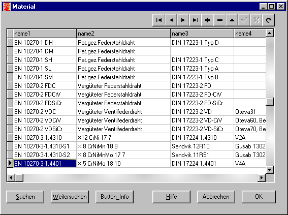 Wenn Sie die Datenbankdateien mit Werkstoff-, Feder-