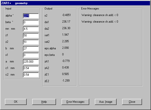 The user interface has been improved at the new 32-bit-version of ZAR1+ by integration of the input windows to complex dialogue boxes.