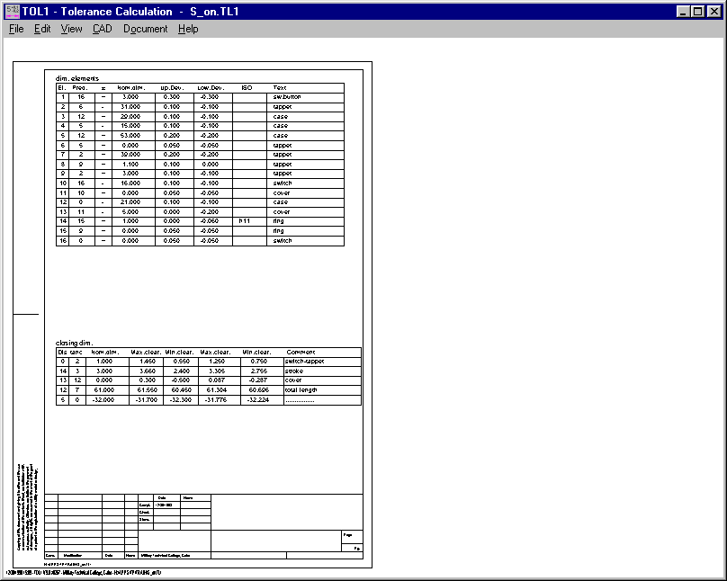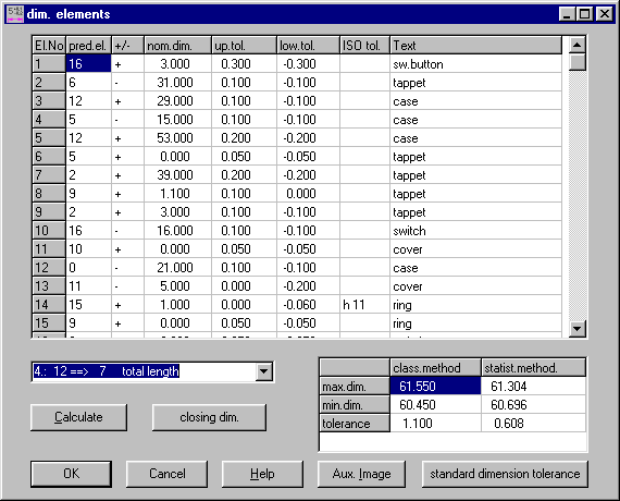 You can generate an element table and a listing of the closing dimensions with the newest version of TOL1.
