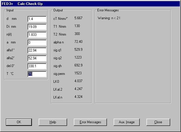 So that the spring moment remains constant, the number of coils is recalculated when you change the temperature under the menu item "Edit-Application". It is now possible to also enter the temperature under the menu item "Edit-Recalculation". Here the dimensions remain the same and the spring moment is altered. I would like to thank Mr Füßmann of Iserlohn, Germany for this improvement suggestion.
