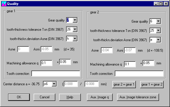 As with the old version, the new NT version of ZAR1+ also allows you to manually enter the upper and lower deviation for centre distance and backlash. For space reasons, "Enter Deviation" no longer appears, only " " appears. Select this option in the combo-box, then the deviations can be entered in the dialogue fields which appear.