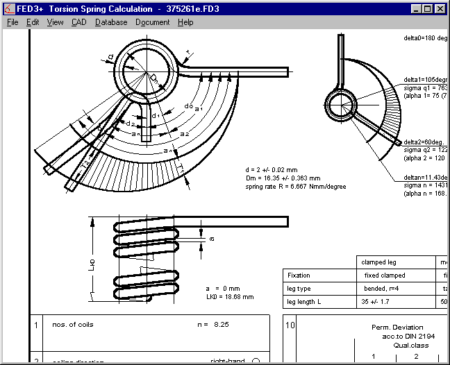 The tolerances for torsion springs have until now been calculated in accordance with the yellow DIN 2194 printout. Since a white printout has been released with a few changes, these have been incorporated into FED3+. Just for information, even the modified standard uses the same tolerance for torque one and torque two, even when T1 is very small and T2 is very large.