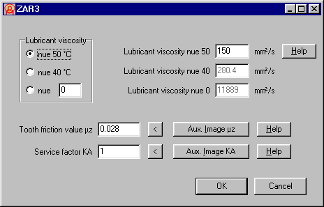 The value for lubrication viscosity is severely detrimental to the dimensions for power loss, and should for this reason not be ignored. ZAR3 now has an option for selecting the viscosity at 40°C, 50°C or any other entered temperature. The program immediately converts the value to the other temperature.