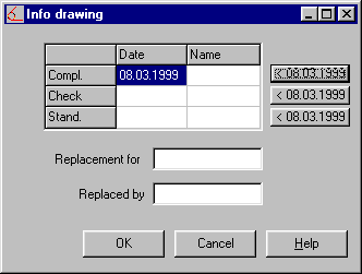 Date and sign for the fields "Checked" and "Checked According to Standards" can be entered under "Document Drawing Information". The data are inserted into the drawing.