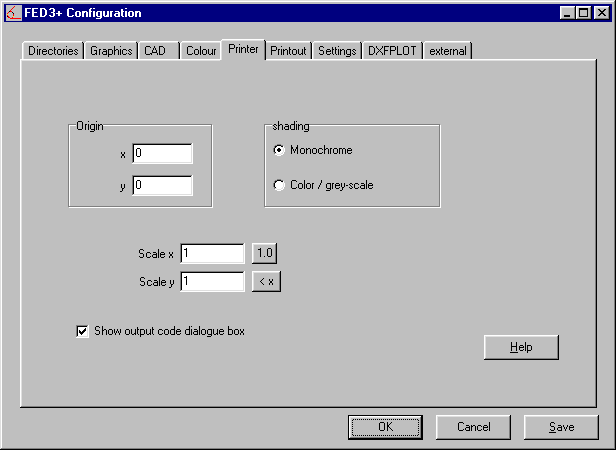 It is now possible to enter different values for length and width for printouts of drawings and diagrams. The page is completely filled when the standard setting of one for x and y is selected. When the landscape print out is selected, the diagram should be undistorted. If for example, a cog is not quite round, this can be corrected by adjusting the scale factors x and y.