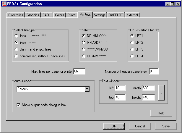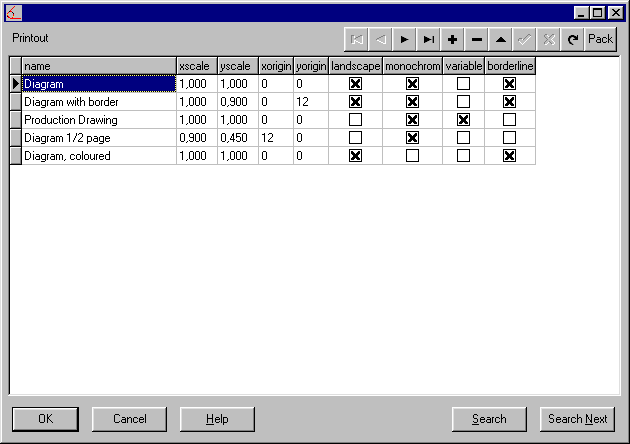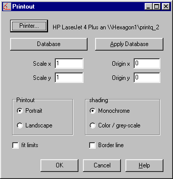 For good graphic printouts, different settings must be used. E.g. diagrams in landscape format, colours, manufacturing drawings in portrait format, monochrome, etc. For this reason it is now possible to adjust settings for size, source, border, etc., as well as selecting a printer.