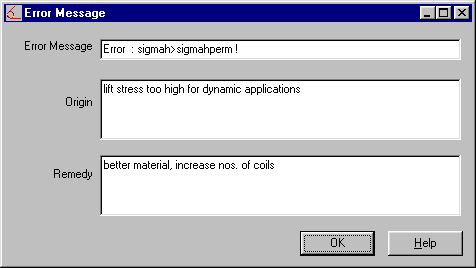 The text for the error description and remedy suggestions for error messages which are displayed can now be edited. The altered text is then saved in the ERR file. I would like to thank Göran Eriksson and Peter Wolf of Lesjöfors, AB for translating this function of the spring program into Swedish.