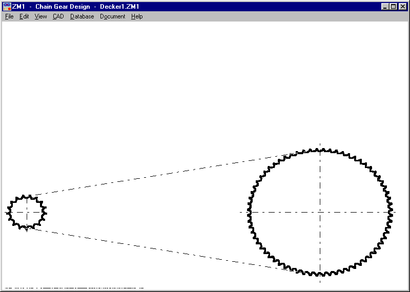 ZM1 searches the data base and suggests an appropriate chain based on ratio relationship, power and drive speed. ZM1 determines the next even number of links for the chain and calculates the exact dimensions based on the approximate center distance.