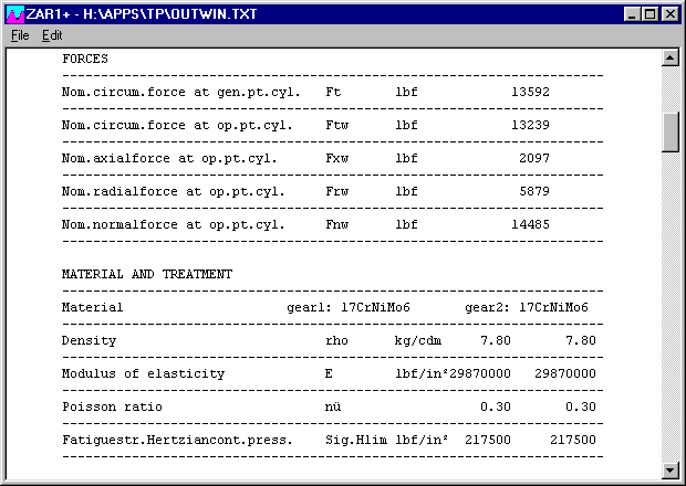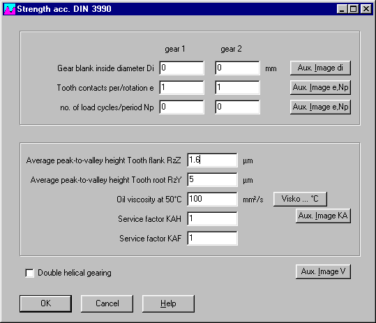 For double helical gears the tooth width b is entered as total width of both parts. The face contact ratio epsilon beta was calculated with the total width b. This has been changed now, for double helical and herringbone gears, Zar1+ uses the half value b/2. Many thanks to Mr. Herrn van Vliet, Tech.Adviesbureau in Schoonhoven/Netherlands, for his approvement suggestions.