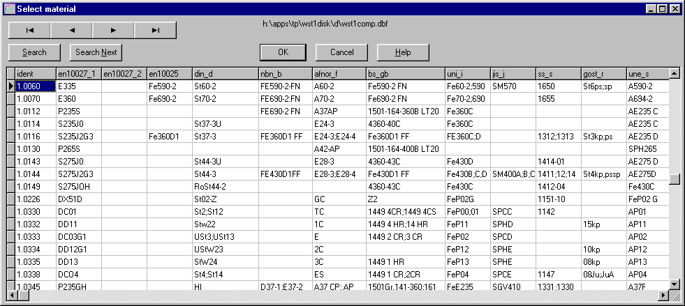 Our material database WST1 has been extended with a conversion tables for material names according to EN standard, NBN (Belgium), AFNOR (France), B.S. (Great Britain), UNI (Italy), JIS (Japan), SS (Sweden), GOST (Russia), UNE (Spain) und AISI/SAE/ASTM (U.S.A.). The database can now be searched for international material names.