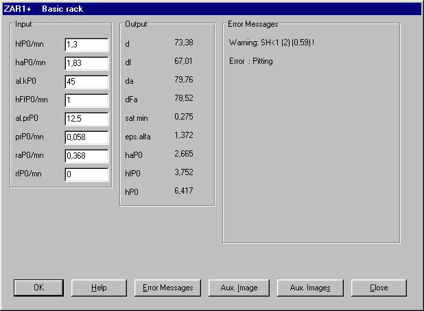 In older ZAR1 versions, tooth thickness san and sat were calculated at for usable diameter dFa, instead for ouside diameter da. With newer versions, the reduction of the tooth thickness by the tool chamfer at outside diameter is considered now. At online input of tooth profile, sat min is displayed now (instead of sat theor.). Thanks to Mr. Facciolla of CIP-Cia Indl Pecas, Guarulhos, Brazil, for his tip.