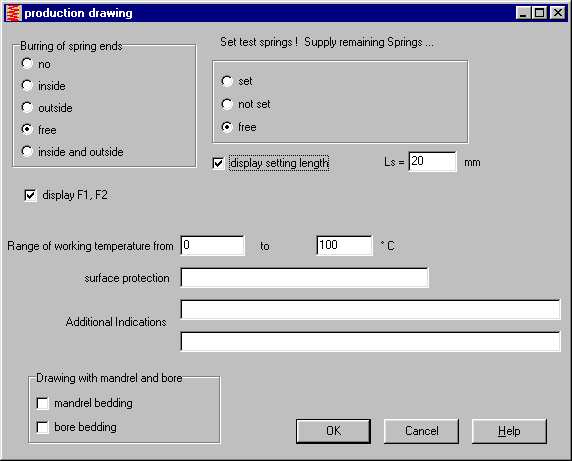 FED1+ prints value R/Dm as pressure for grinding of the spring. Grinding of springs with R/Dm less thans 0.03 N/mm² is difficult, FED1+ generates a new warning for this case. Thanks to Mr. Dietz of Federn-Dietz, Neustadt.