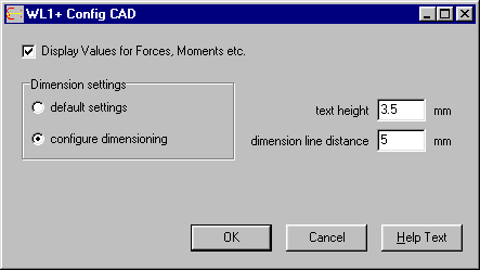 Distance of dimension lines and text height may be configured at CAD->Settings