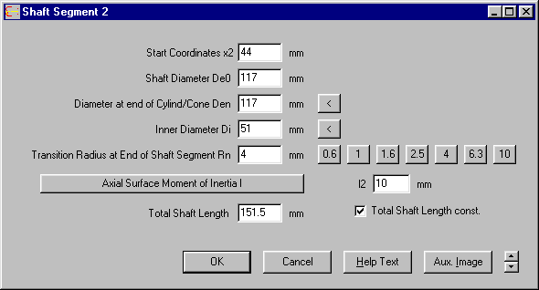 When inserting and deleting shaft segments, you can choose, if the whole shaft should be elongated/shortened, or if only the next section should be influenced. When editing a shaft section, you find a new option "Total shaft length const." If disabled, a modification of the shaft section will change shaft length and x coordinates of the other shaft segments. This option may simplify changes of the shaft geometry. Thanks to Mr. Müller, Wollbach/Germany for the improvement suggestions.
