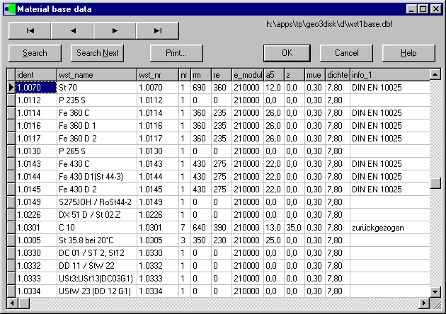 Many extensions have been added to the GEO3 software for calculation of Hertzian pressure. The permissible pressure of the material is considered now with 1.66*Re (yield point), GEO3 generates an an error message. If overridden. The material databse was extended, now all material base data of WST1 are available.