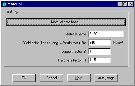 The WN3-Software was adopted to edition Nov. 98 of DIN 6892. Compared with draft of 3/96, there were no changes. New in WN3 is the possibiliy for direct input of material data for the sliding key. Until now, material data must be selected from material database.