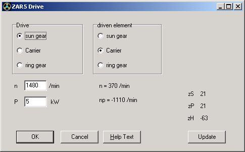 The ZAR1+ software already includes a pre-dimensioning for planetary gearings. But for calculation of all geometry and strength data, two gear pairs (sun-planet and planet-ring gear) must be calculated separately. ZAR5 makes things easier: all data are generated on one pass.