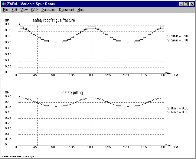 As no special calculation method is available for variable gears, ZAR4 calculates strength according to DIN 3390 by means of equivalent round gears.