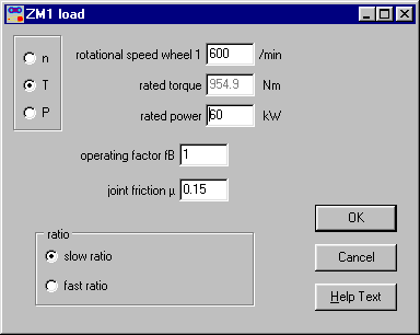 Similar than at ZAR1+, you have the choice between two values of torque, power and speed when entering load data. Thanks to Mr. Gerber of Rotzler for his suggestion.