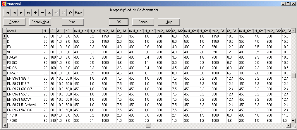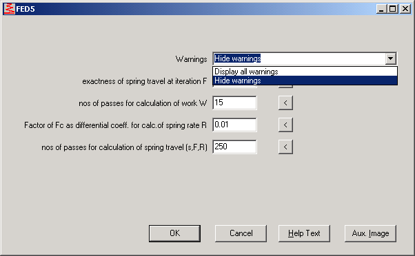 Relaxation of springs can now be calculated by our software for compression springs and extension springs. Caused by high stress and high temperature, spring relaxes and spring force reduces by the time. Parameters for relaxation are stored at the "fedwstr.dbf" database, that may be appended and modified by the user. The parameters are: relaxation in per cent after 48 hours for two shear stress values, two temperatures and two wire diameters.