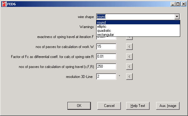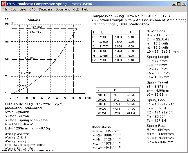 Nonlinear cylindrical compression springs of rectangulare, square or elliptic wire section can now be calculated with FED6.