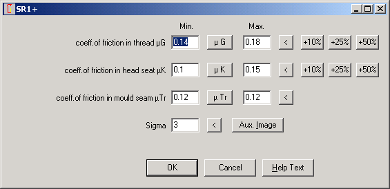 The new version of SR1 and SR1+ allows you to enter a min and a max value for the friction coefficient. The software calculates a minimum tightening torque MA min that considers tolerances of tightening tool and friction.