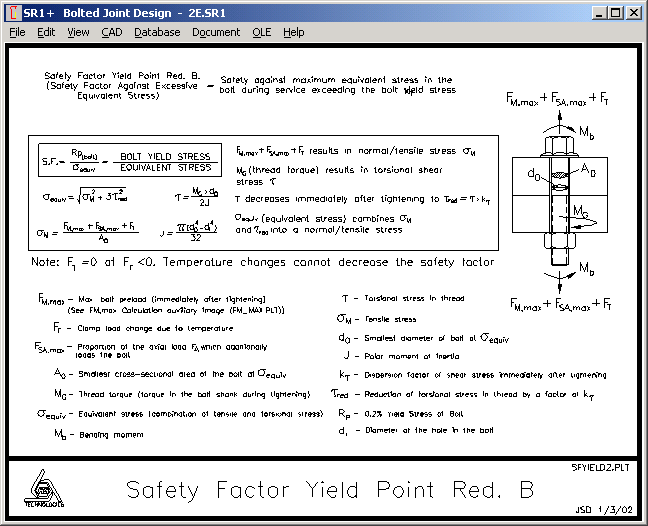 In difference to VDI 2230, Safety factor SF and effective stress Sigma red,B of SR1 considers bending stress Sigma Sabo in case of eccentric applications.