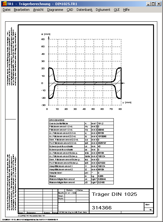 Das Trägerberechnungsprogramm TR1 generiert eine Fertigungszeichnung für den Profilquerschnitt. Neu ist auch die Ausgabe einer 3D-Zeichnung des Trägers als DXF- oder IGES-Datei.