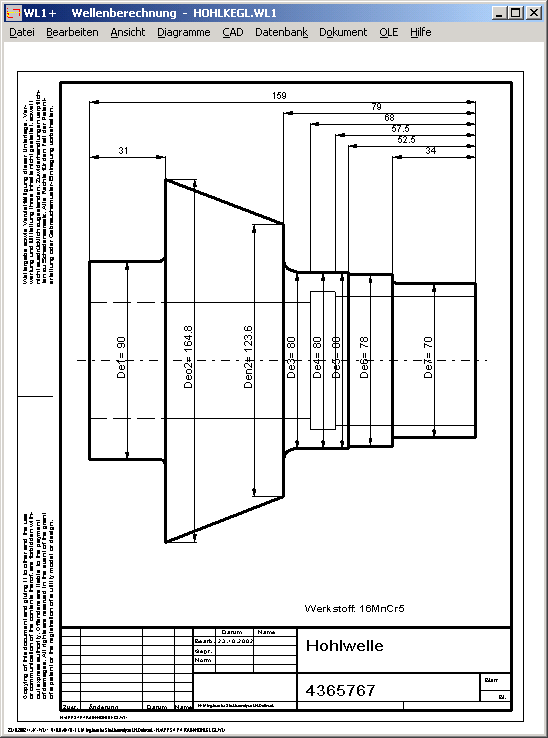 Neu im Wellenberechnungsprogramm WL1+ ist eine Fertigungszeichnung der bemassten Welle.