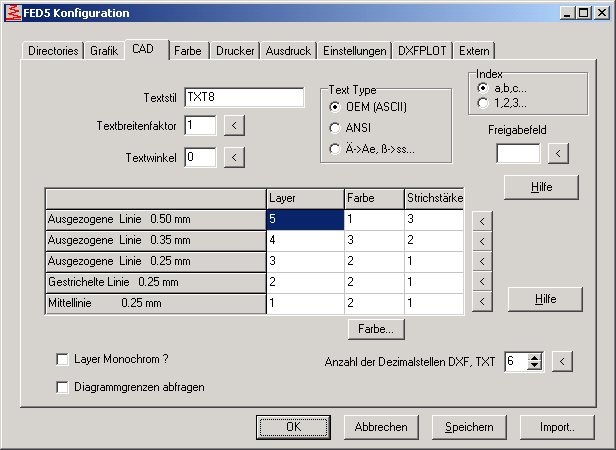 Die Anzahl der Dezimalstellen in DXF-Dateien war bisher fest auf 6 eingestellt. In den neuen Versionen sind die Nachkommastellen für DXF und CAD-TXT-Dateien konfigurierbar.
