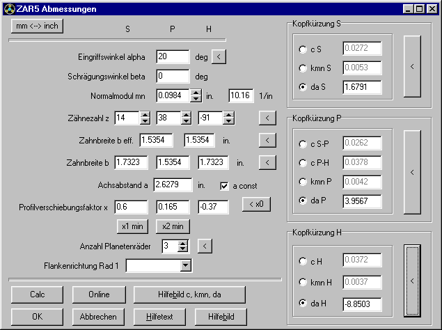 In den Programmen zur Getriebeberechnung kann man nun in jedem Eingabefenster zwischen metrischen und englischen Einheiten wechseln.