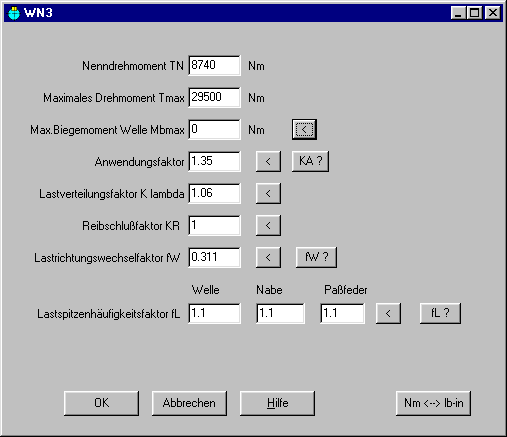 Die Eingaben zur Paßfederberechnung in WN3 wurden in einem Fenster zusammengefasst, das schafft eine bessere Übersicht.
