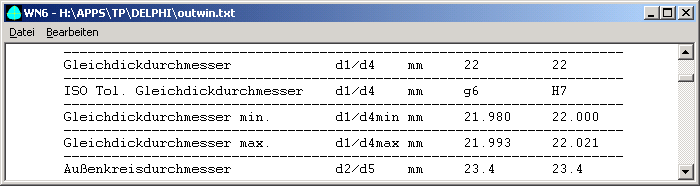 Die ISO-Toleranzen für den Gleichdickdurchmesser wird berechnet und mit ausgegeben.