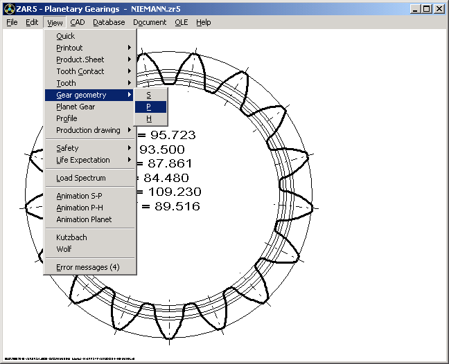 Neu sind "Ansicht->Zahn" und "Ansicht->Zahnräder" mit Zeichnung von Zahnlücke bzw. Zahnrad für Sonnenrad, Planetenrad und Hohlrad.