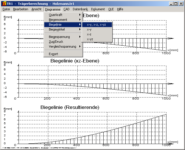 Unter Bearbeiten->Berechnung gibt es ein neues Eingabefenster zum schnellen Ändern der gewünschten Berechnungsoptionen. Das Diagramm-Menü erhielt Untermenüs für die Darstellung von xy-Ebene, xz-Ebene, Resultierende, oder alle zusammen. Dies erleichtert die Übersicht und den schnellen Zugriff auf die gewünschten Diagramme.