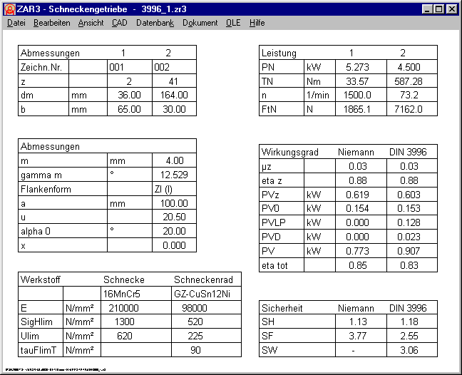 ZAR3 - Festigkeitsberechnung nach DIN 3996
