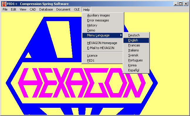 New feature for all HEXAGON programs: You may now switch menu language between English, German, and Korean, as well as to all other languages the software is available for (FED1+ can be delivered in German, English, French, Italian, Swedish, Spanish and Portuguese language).