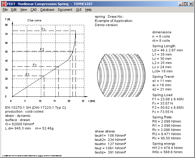 For more complex springs (> 20 segments), FED7 draws a spring shape drawing instead.