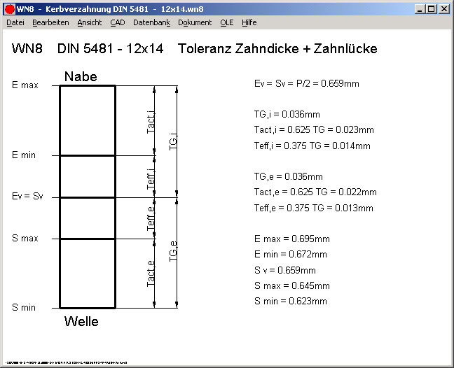 In WN8 kann man eine Grafik mit den Toleranzen von Zahndicke und Zahnlücke für die gewählte Kerbzahnpassung anzeigen lassen.